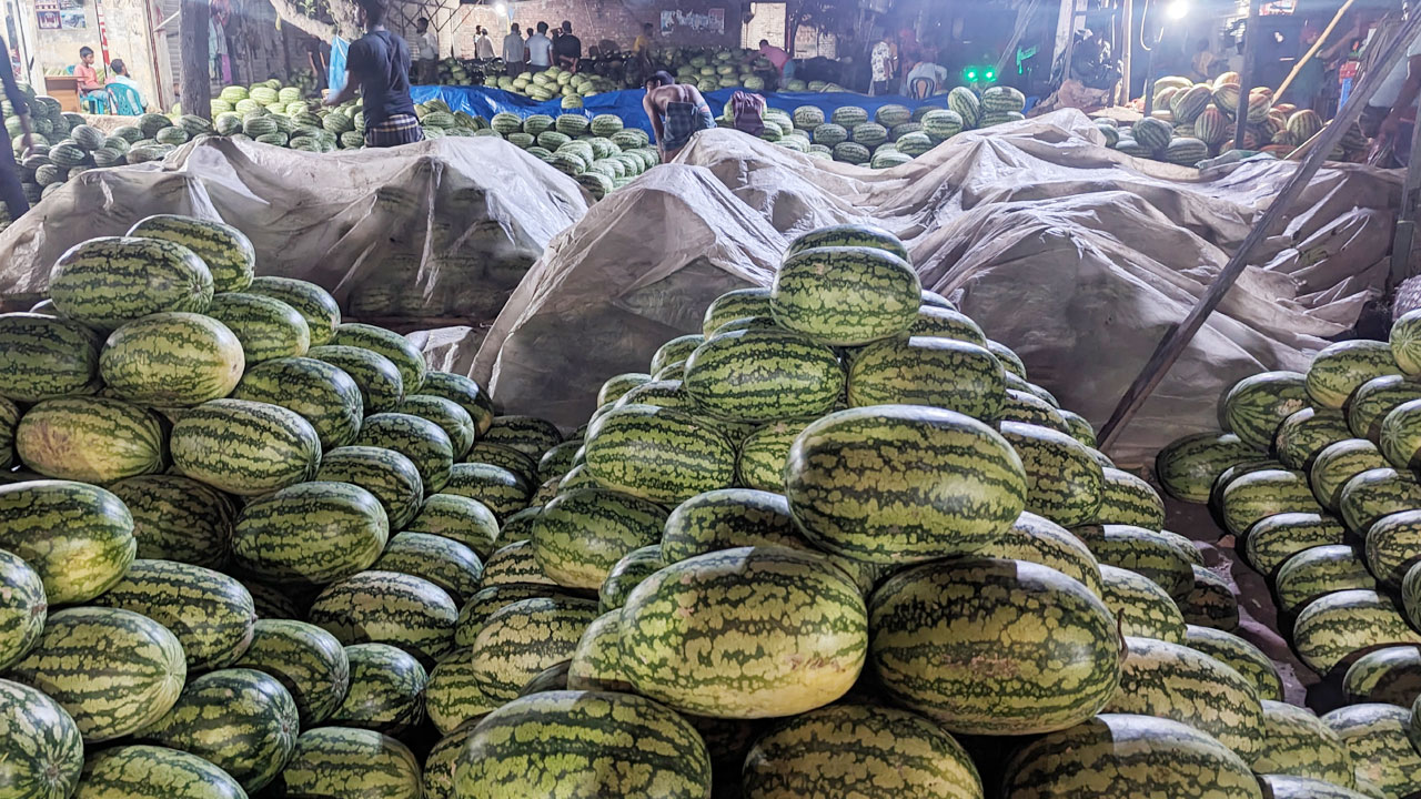 আড়তে তরমুজ রাখার জায়গা নেই, অর্ধেকের নিচে নেমেছে দাম