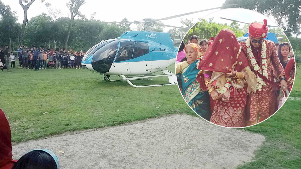 বাবার স্বপ্নপূরণে হেলিকপ্টারে চড়ে বিয়ে
