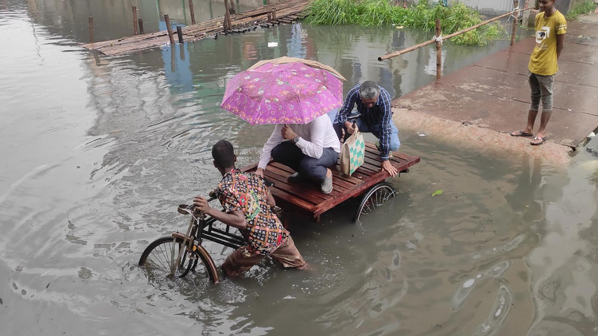 নারায়ণগঞ্জে রাতভর বৃষ্টি, ঘরের ভেতর কোমর পানি