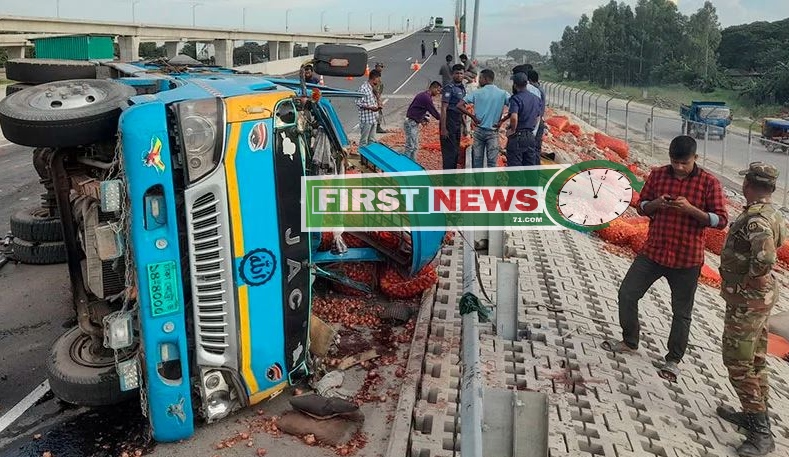 পদ্মাসেতুতে উল্টে গেল পিয়াজবাহী একটি পিকআপ