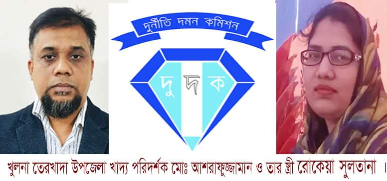 খুলনাঅফিসঃ অবৈধভাবে সম্পদ অর্জনের অভিযোগে মঙ্গলবার ২৬ জুলাই খুলনা তেরখাদা উপজেলা খাদ্য পরিদর্শক মোঃ আশরাফুজ্জামান ও তার স্ত্রী রোকেয়া সুলতানার