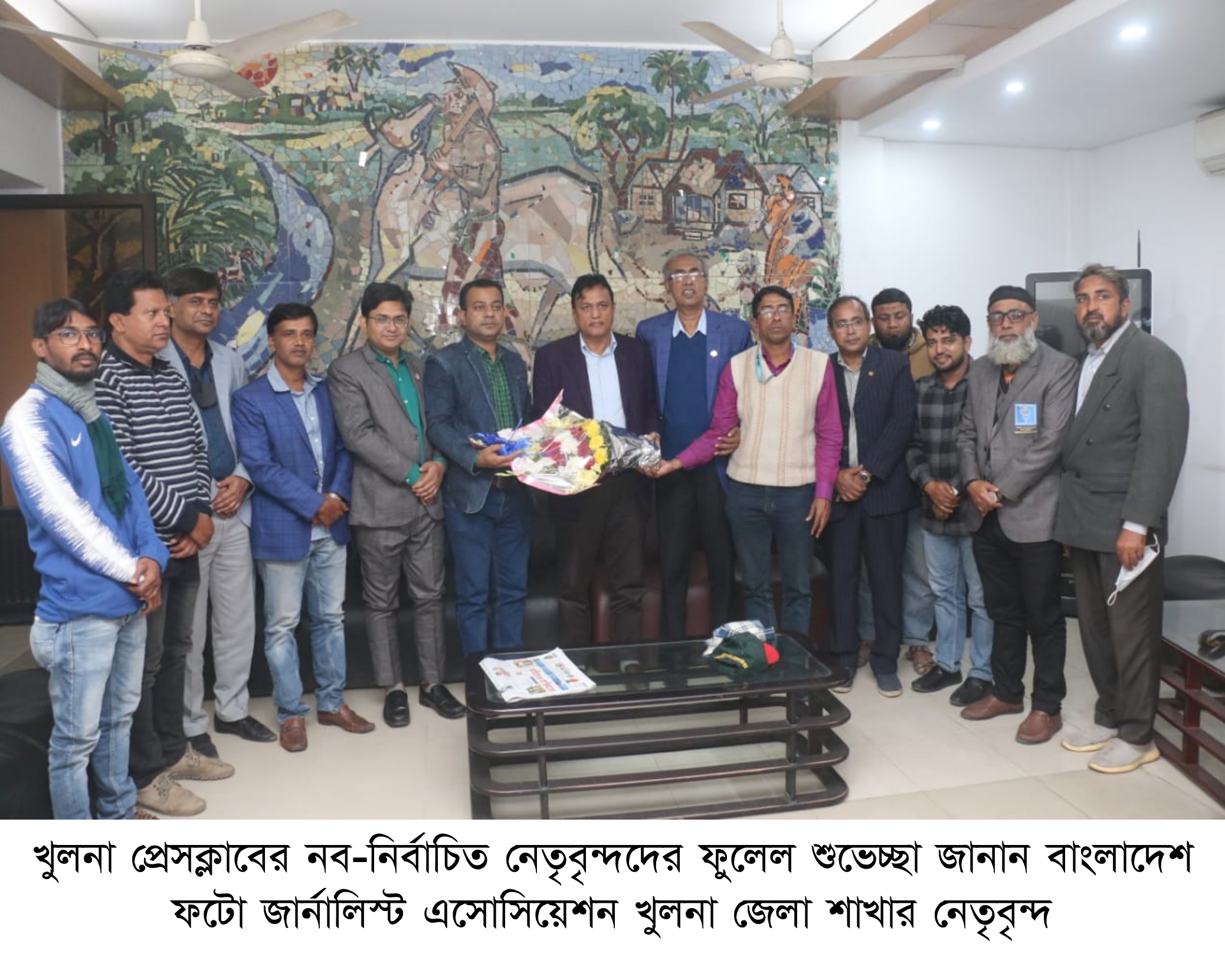 খুলনা প্রেসক্লাবের নবনির্বাচিত নেতৃবৃন্দকে বাংলাদেশ ফটো জার্নালিস্ট এসোসিয়েশনের ফুলেল শুভেচ্ছা